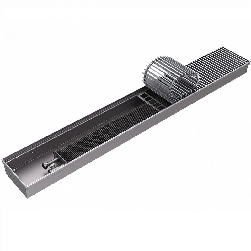 Все теплообменники укомплектованы воздухоотводчиком и оконечными латунными переходниками с внутренней резьбой G ½". Возможна комплектация терморегулирующей арматурой. Решетка может быть изготовлена из анодированного алюминиевого профиля (который может быть выкрашен в любой цвет по каталогу RAL), полированной нержавеющей стали или ценных пород дерева под дизайн пола.