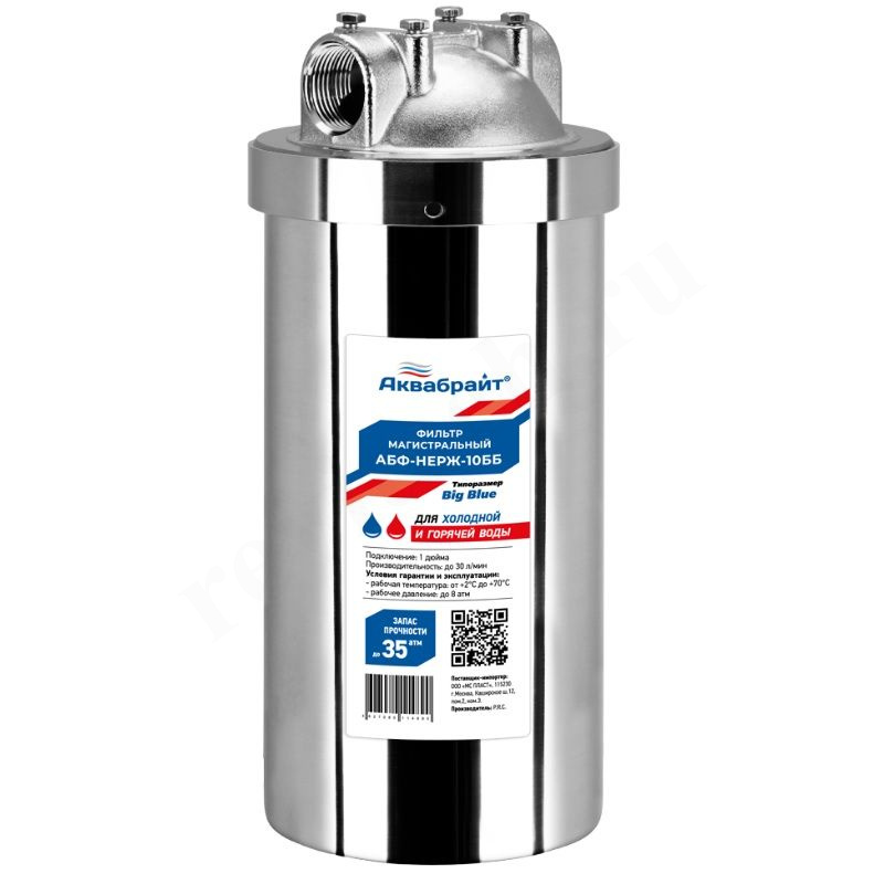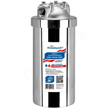 Магистральные фильтры типоразмера Big Blue серии АБФ-НЕРЖ изготовленные из нержавеющей стали, предназначены для очистки холодной и горячей воды и защиты сантехники от механических примесей, ржавчины, песка, ила, хлорорганических соединений, растворенного железа, тяжелых металлов, в зависимости от установленного в фильтр картриджа.