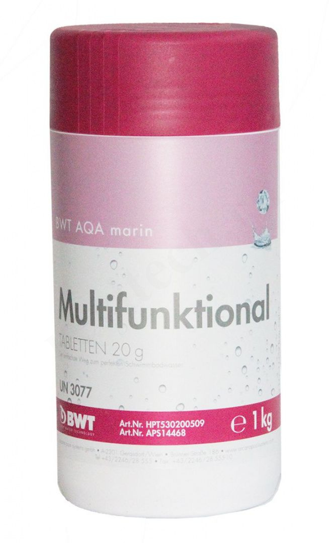 Многофункциональный препарат предназначен для комплексной дезинфекции бассейна с очисткой воды от бактерий, водорослей и других видов микроорганизмов. В составе присутствует большое количество активного хлора, биологически активные компоненты обеспечивают комбинированное действие. Одной таблетки достаточно для продолжительной очистки 10 кубометров воды.