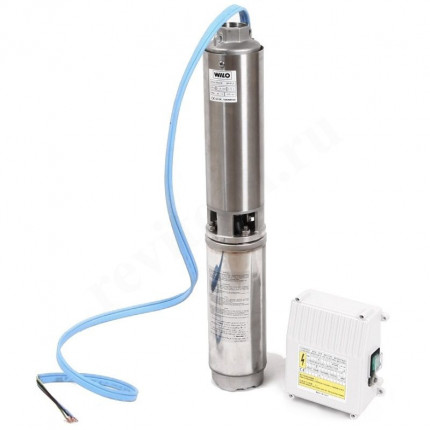 Полностью погружной многоступенчатый насос с радиальными или полуосевыми рабочими колесами в секционном исполнении для вертикального или горизонтального монтажа со встроенным обратным клапаном. Стойкий к коррозии электродвигатель однофазного или трехфазного тока для прямого пуска с водогликолевой смесью. Полностью герметичные и пропитанные смолой самосмазывающиеся подшипники с обмоткой с изолирующей лакировкой. Охлаждение электродвигателя происходит за счет перекачиваемой жидкости. Этот агрегат всегда должен эксплуатироваться в погруженном состоянии. Горизонтальный монтаж выполняется с охлаждающим кожухом. Для перекачивания воды из скважин с максимальной глубиной погружения 200 м и максимальным содержанием песка 50 г/м³.