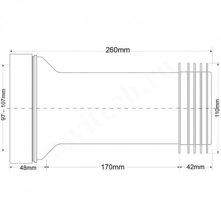 Прямая фановая (L260мм) труба с прокладкой; вход 90-110мм, выход вставляется внутрь 4"/110мм трубы