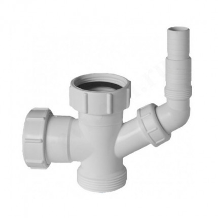 Тройник компрессионный с адаптером под углом для подключения слива бытовой техники