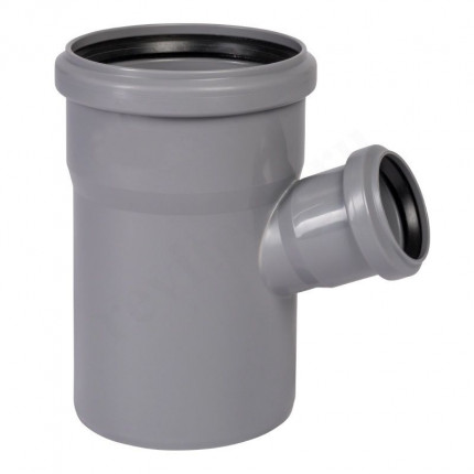 Тройник канализационный Ростурпласт для трубы диаметром 110 мм. Имеет выход под трубу диаметром 50 мм под углом 67 градусов. Применяется при монтаже систем внутренней канализации.